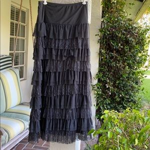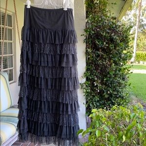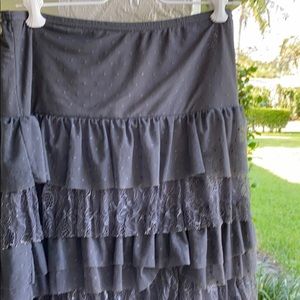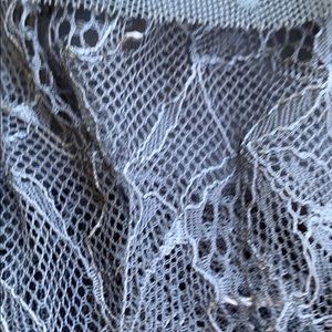Dress-Millau-sleeveless. From the store LF -Layers upon layers of mesh & lace of flat ruffles. The layers are made of sheer netting fabrics so it isn’t bulky and they lay flat. It’s actually very flattering. The color is a dark grey, almost black.