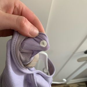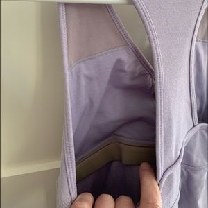 Tank top with mesh detailing. Built-in shelf bra. No padding included, but Lululemon will give you cups for free if you ask in store.