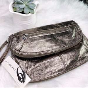 NINE WEST Pale Bronze Zip Magnet Fold Clutch Purse