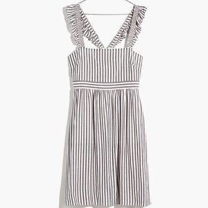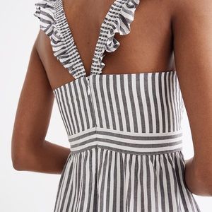 The babydoll grows up (and glows up). This vintage-inspired striped sundress has a flattering contrast waistband and superfeminine ruffled straps that meet in the back.