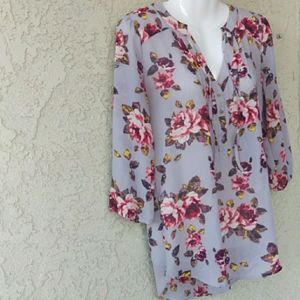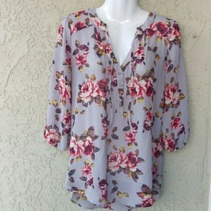 Vera Wang princess chiffon sheer floral blouse exc