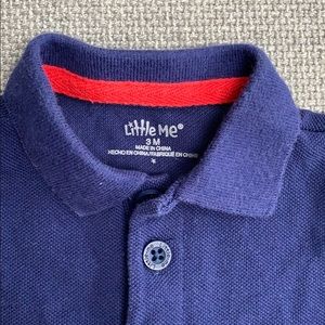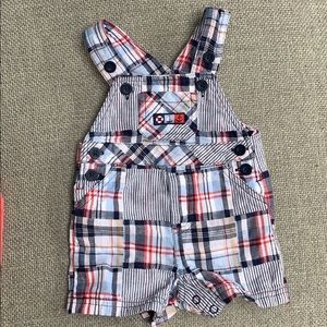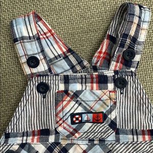 This 2 piece Little Me outfit is cute and comfy. The straps on the overalls have 2 buttons to adjust length. Snap closure on legs helps make diaper changes quick and easy. The outfit is in great condition- no stains or damage.