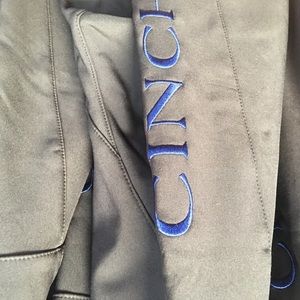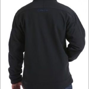 Saddle up wearing this stylish fall-weather-perfect black bonded jacket with blue contrast lining & logo stitching. Crafted to shield you from wind and rain. Design details include reliable Durable Water Resistant (DWR) finish, handy adjustable velcro cuffs, pocket zippers and CINCH brand logo embroidery.