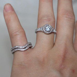 NEW 18K White Gold Diamond Halo 3 PC Ring Set