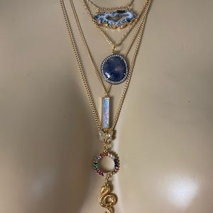Laborite, opal, raw geode, golden snake, golden butterfly and a circular rainbow CZ charm. All charms are outsourced from the best of the best and I carefully handpick each and every charm and pendant.