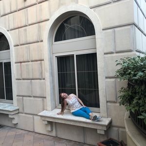 Such a cute outfit, cute model and really creative photo! Glad to see you were not 10 stories up, whew! 👏👏Good luck Poshing!
