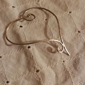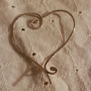 Large Hand Hammered Sterling Silver Heart Pendant, EUC, absolutely gorgeous! Lovely thin script heart, handmade by silver jewelry artist in OBX, bought at artist CoOp there.
