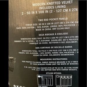 DKNY NIP Modern Velvet 50" x 108" Curtain Set