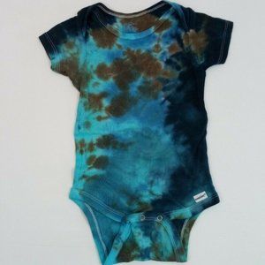 Hand Dyed Tie Dye Tee Cotton Jersey Snap One Piece 18 Months Blue Gray Big Sky