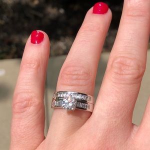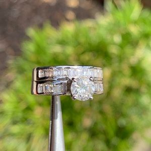 Stunning 2 piece set! Main stone is a 1.00ct 6.3mm round brilliant cut earth mined diamond with no enhancements. G-color/ SI1-clarity (looks like VS). Has so much fire and brilliance!