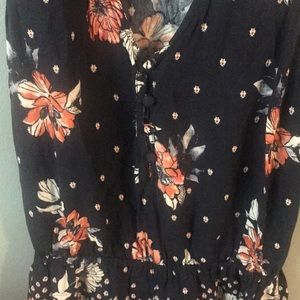 Navy jump with pink flowers, size medium, buttons in the front, good condition