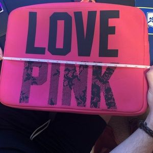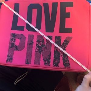 Bright pink ! 15 W 11 & 1/2 L.. To big for my mac book air