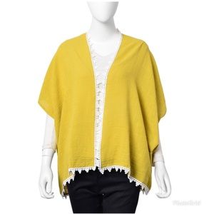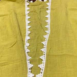 Lime Yellow Bamboo Cotton Lace Border Kimono (One Size Fits Most). P12/1