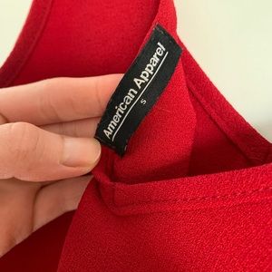 Red American apparel tank top. Excellent used condition, bought from a fellow posher and it’s time to pass it on. Still has a ton of life left :) material is 95% Polyester & 5% Elastane. Borrowed the last two photos from posh for try on reference.