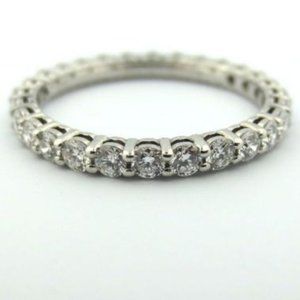 Offered for sale is a beautiful Tiffany & Co. Shared Setting Full Circle .86 Diamond Platinum Wedding Band Ring. Absolutely Excellent condition! The ring is Made from Solid Platinum 950 and weighs 2.3 grams. Total weight of the diamonds is 0.86Ct, G Color VS1 Clarity Diamonds. Measures 2.2 mm thick and It is currently a size 6. It is stamped 950 denoting the platinum and "Tiffany & Co." stamp. It comes with Tiffany & Co Box.