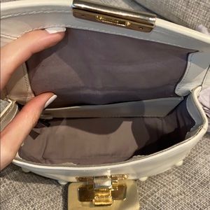 Cute leather crossbody in good condition. Front is neat and free with stain. Small stain on the edge of back pocket but is hardly being noticed when wearing it. Perfect for any occasion! Comes with the original dust bag.