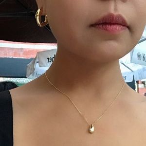 Real 18K gold layered on sterling silver core. Smooth high shine water droplet pendant on link chain. Pendant & chain have S925 stamp.