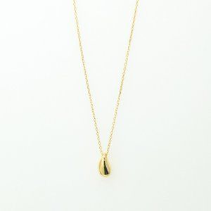 Real 18K gold layered on sterling silver core. Smooth high shine water droplet pendant on link chain. Pendant & chain have S925 stamp. Comes with eco GIFT BOX. Material: Sterling silver 925, 18K Gold layer MEASUREMENT Chain Length: 15", extender: + 2" Pendant Length: 0.4" Perfect for anyone with sensitive skin. Note: 18K gold has deeper yellow hue than 14K gold.