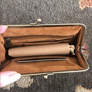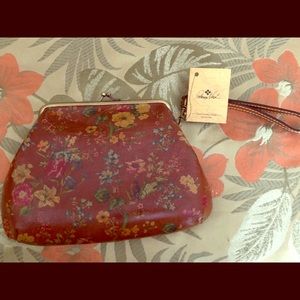 Patricia Nash wristlet. Burgundy and flowers. Gold