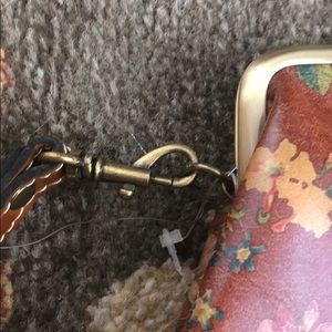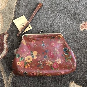Patricia Nash wristlet. Burgundy base with flowers. Gold metal detail. Wristlet strap is detachable. Never used. From pet and smoke free home.