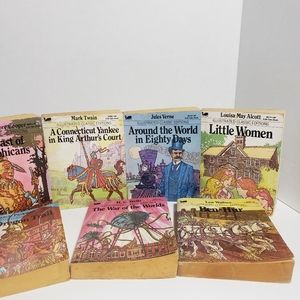 These are the classic stories that we come to love . No doubt there are the movies you can stream , just think though how enjoyable you and yours will feel as you read to them or they to you. In these wonderful Illustrated books. The books are about 5"×4"