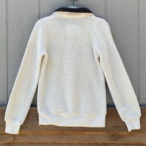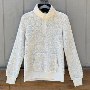 Reflex white sherpa teddy half zip pullover fuzzy long sleeve collared sweater
