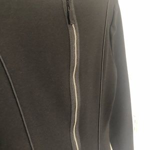 Gorgeous long sleeve black and white dress. Scoop neck, knee length. Heavier stretchy material. Exposed zipper up the back. Size 0. Excellent condition!