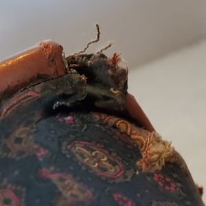 This rare vintage hardshell leather purse is well loved and has lots of flaws.
