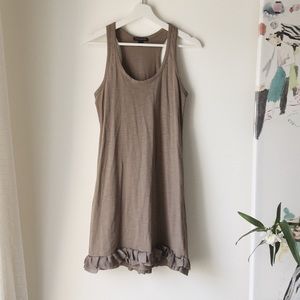 BR Factory racerback brown minidress with ruffle hem. Size XS. 100%cotton. Approx 32.5in length, 16in width armpit to armpit.