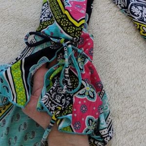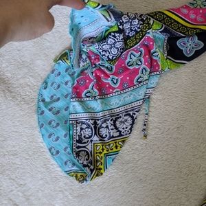 I only wore this dress once so it's time to cycle it out of my wardrobe. It has a super fun pattern perfect for the spring and summer. Very bright and vivid colors. The sleeves are 3/4 length bell sleeves with a slit and a cute tie at the top. The neckline is elastic and can be worn on the shoulders or off the shoulders. This dress does have some stretch to it also.