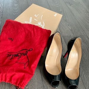 🖤Authentic Christian Louboutin Privé black patent leather peep toe 120mm pumps in excellent condition worn twice almost new.