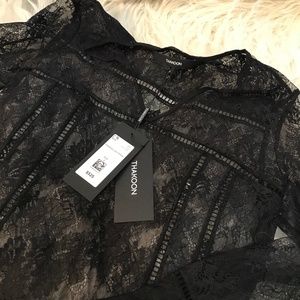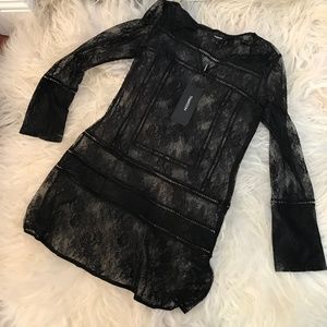 Black Thakoon lace top/dress with V-neck, long sleeves and concealed zip closure at side.