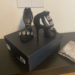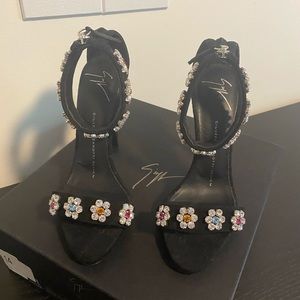 Giuseppe Zanotti Black Suede Crystal Flower Embroidered Sandals