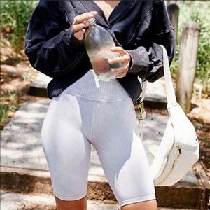 NWOT Free People Good Karma Bike Shorts. High rise. Breathable. And very soft! Bought these brand new and removed the tags but have not been worn other than trying on. Color is called lavender dust. Excellent condition, adorable and super comfortable!!