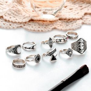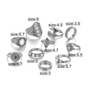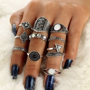 2/$20! Set of 10 Silver & Gem Boho Midi Rings