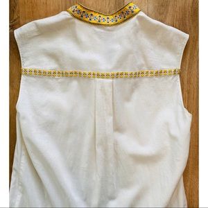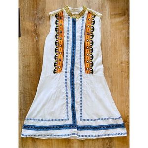 Ivory embroidered cotton (100% Cotton). Shift. Sleeveless. High neckline. Hidden front button down placket. Fully lined.