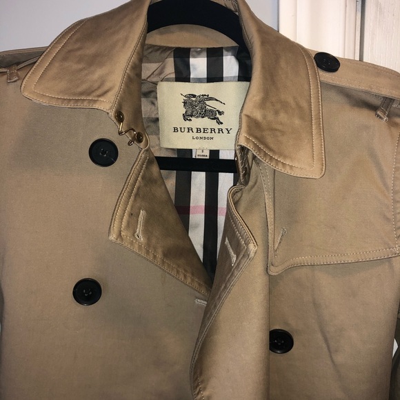 Super mint Burberry trench coat! Had it for 5 years now and still has lots of life left. I am 5,4inches so the jacket sits right above my mid thighs 💯 Authentic.