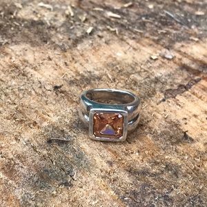 Solid sterling silver with square emerald cut yellow CZ diamond.