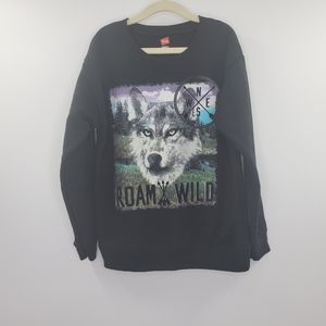 Roam Wild Wolf Big Graphic Crew neck Sweater Black