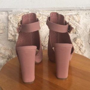 DONATING JUNE 11TH FINAL PRICE❣️ So spot on for the look this season! Trendy dusty rose/mauve peek-a-boo ankle strap perforated bootie with a chunky heel! These little numbers will pair with jeans, skirts, dresses, shorts! Everything! Fits true to size, I wear a 9 and the 9 fits. Measurements are approx heel height 4"Closet closing for good June 30th❣️ AJune will be my final months of sales. I have already reduced prices 45-50% on boutique items.