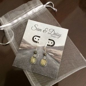 Beautiful earring design of natural labradorite by Sam & Daisy Designs. You will love how they shimmer in the light with iridescent of blues, greens and tan colorations. Sterling silver findings. Drop length is 1 3/4".