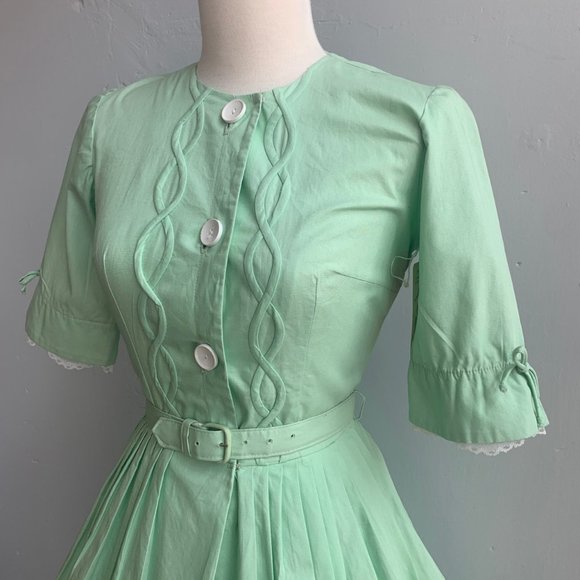 1950s Deadstock Seafoam Green Shirtwaist Dress