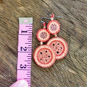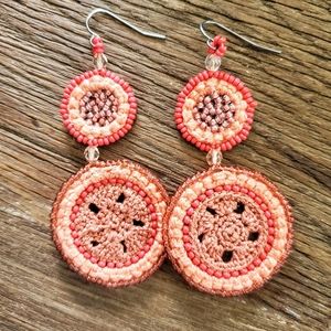 Reina Peruvian beaded earings in Coralista Beautiful vivacious colors and subtle sparkle. Peach & coral together in a totally gorgeous earing!