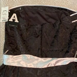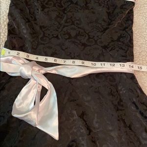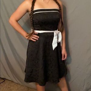 Strapless Black dress with white trim. Zipper in the back. White silk accent belt . Brand new material and measurements are provided in the pics.