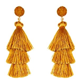 Golden Mustard Acrylic Druzy Tassel.Drop earrings
