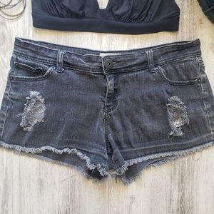 Faded black shorts perfect for concerts and beach days
