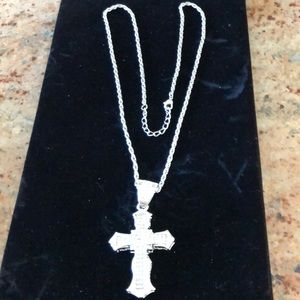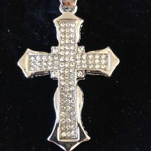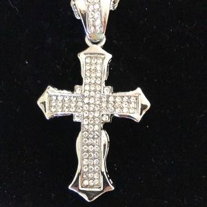 New with no tag silver cross with silver rhinestone for Cuban necklace long chain beautiful
