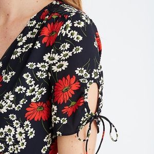 New Madewell Peekaboo-Sleeve Midi Dress in Hillside daisies. Color black and multicolor.