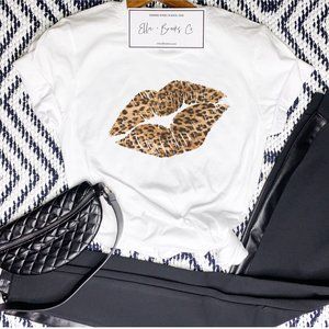 Cheetah Print Lips Kiss Graphic Tee Shirt NEW