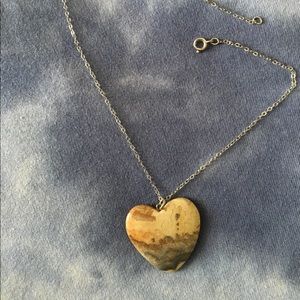 Polished picture agate natural gemstone heart necklace on fine silver chain.